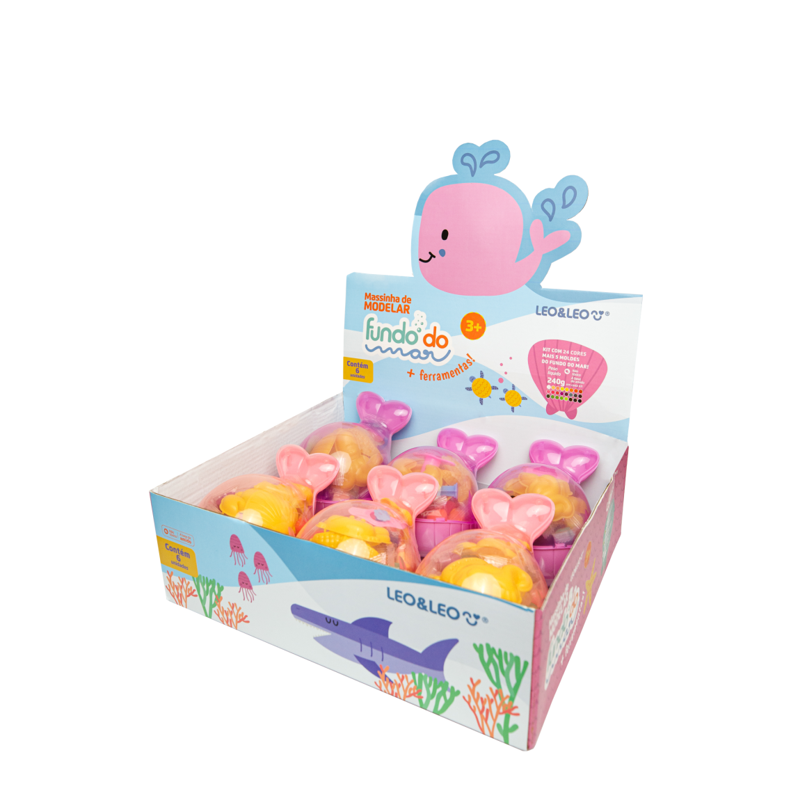 A Massa de Modelar Fundo do Mar Baleia da Leoeleo é uma opção incrível para as crianças se divertirem e explorarem o mundo submarino. Este kit vem em um display com seis unidades e cada unidade contém 24 cores diferentes de massa de modelar, além de cinco moldes de personagens e elementos marinhos.