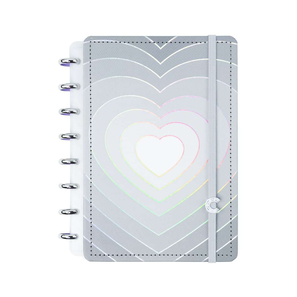 Apaixone-se e inspire-se com este caderno incrivelmente personalizável cinza com um brilho super sofisticado em formato de coração com hotstamping holográfico.