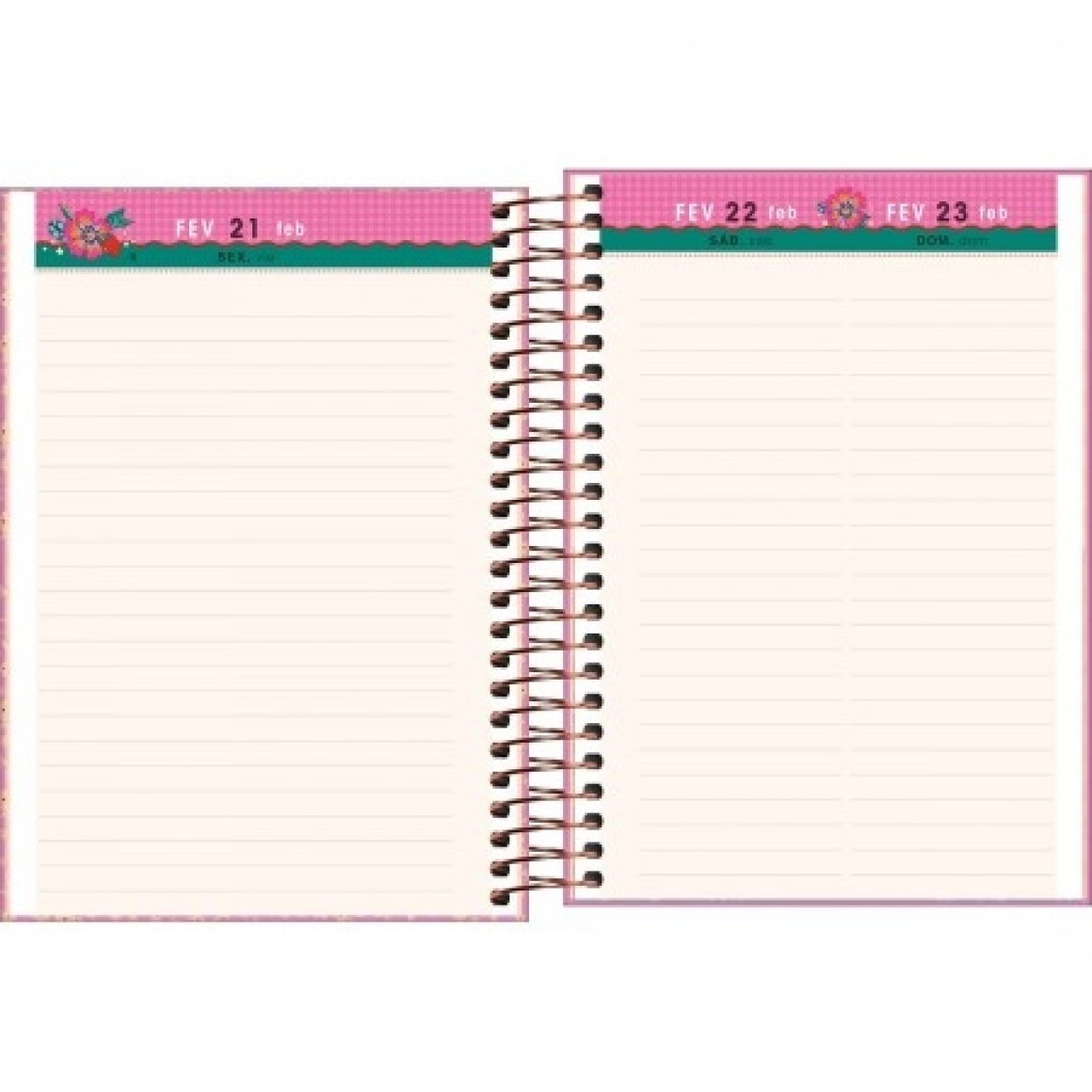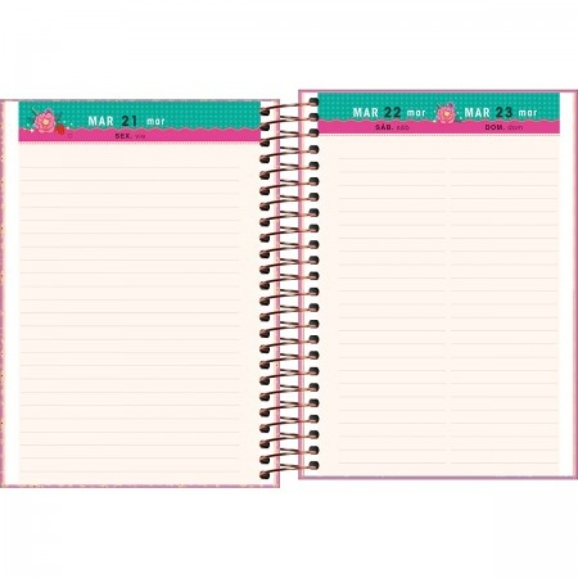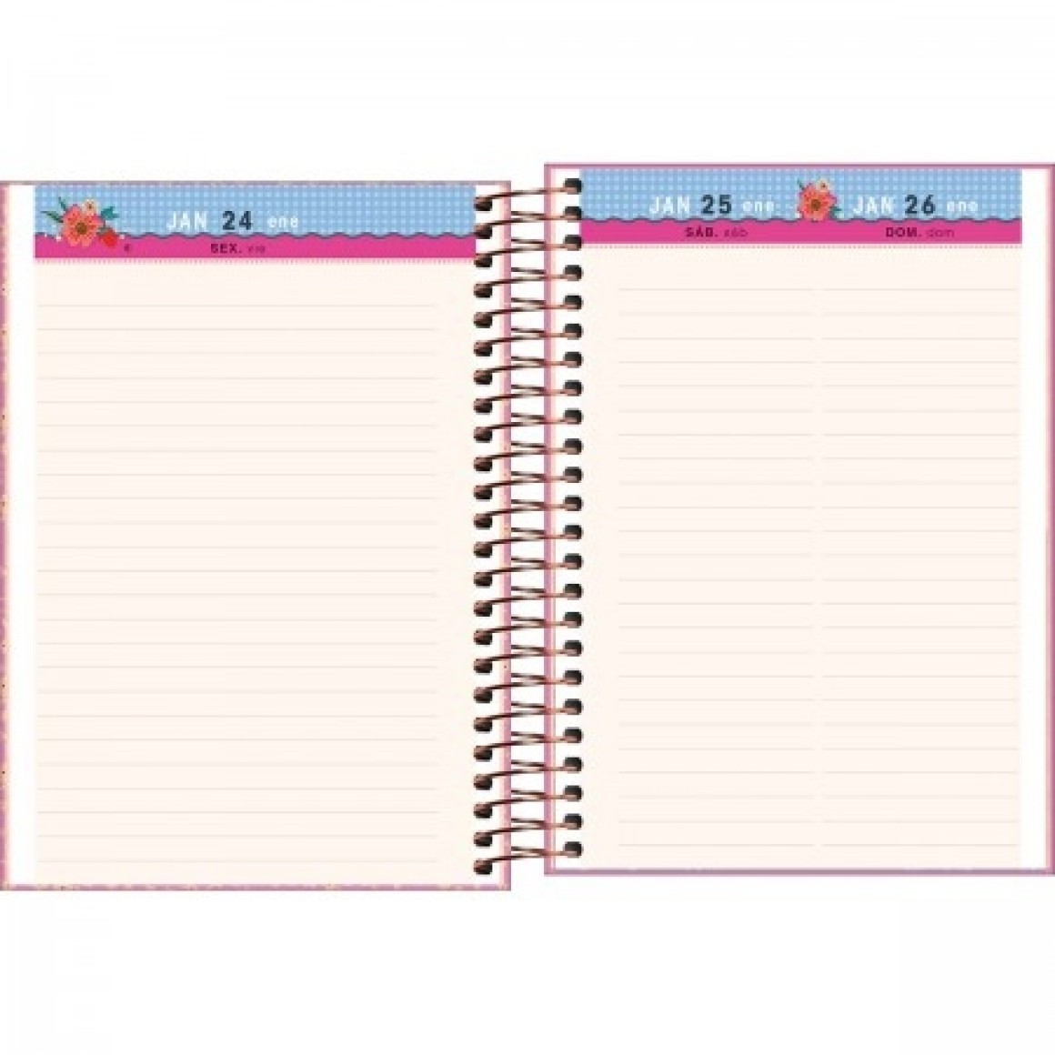 A Agenda Espiral Diária 14 x 20cm Le Vanille 2025 pode ser usada para organizar os compromissos do dia a dia, em casa, no trabalho e na escola. O produto, com visões diária, mensal e anual, além de folhas para anotações, possui capa dura com hot stamping e parte interna decorada, acabamento em espiral dourado, miolo com 176 folhas, adesivos e bolsa de papel para guardar documentos.