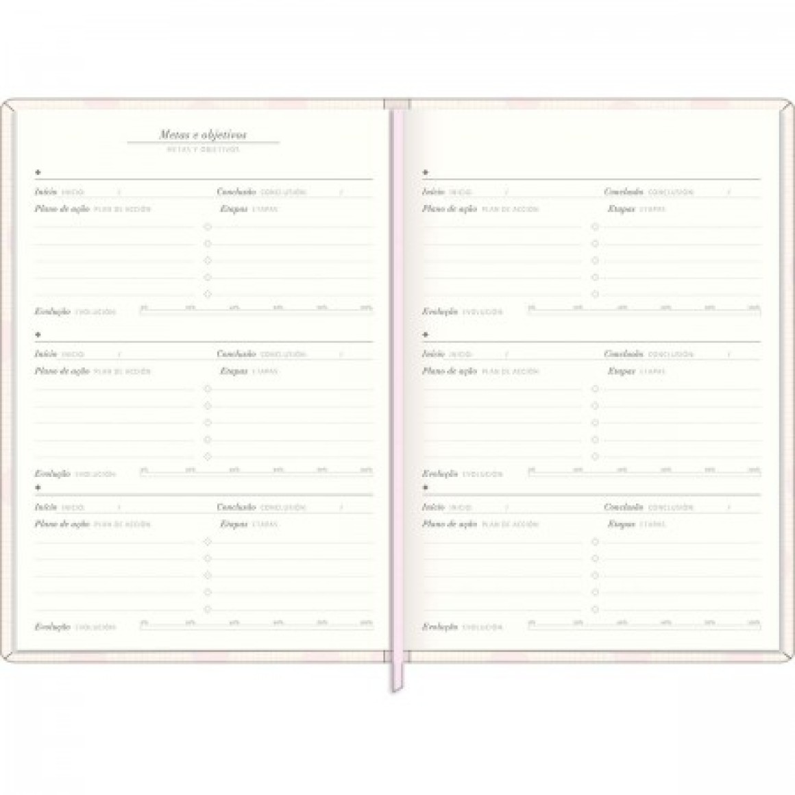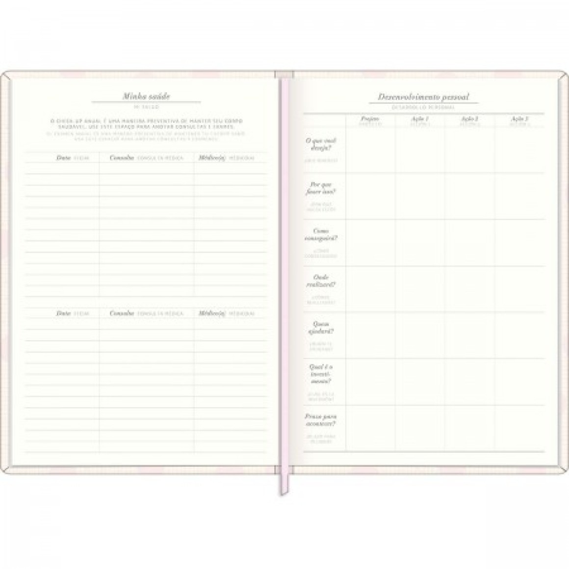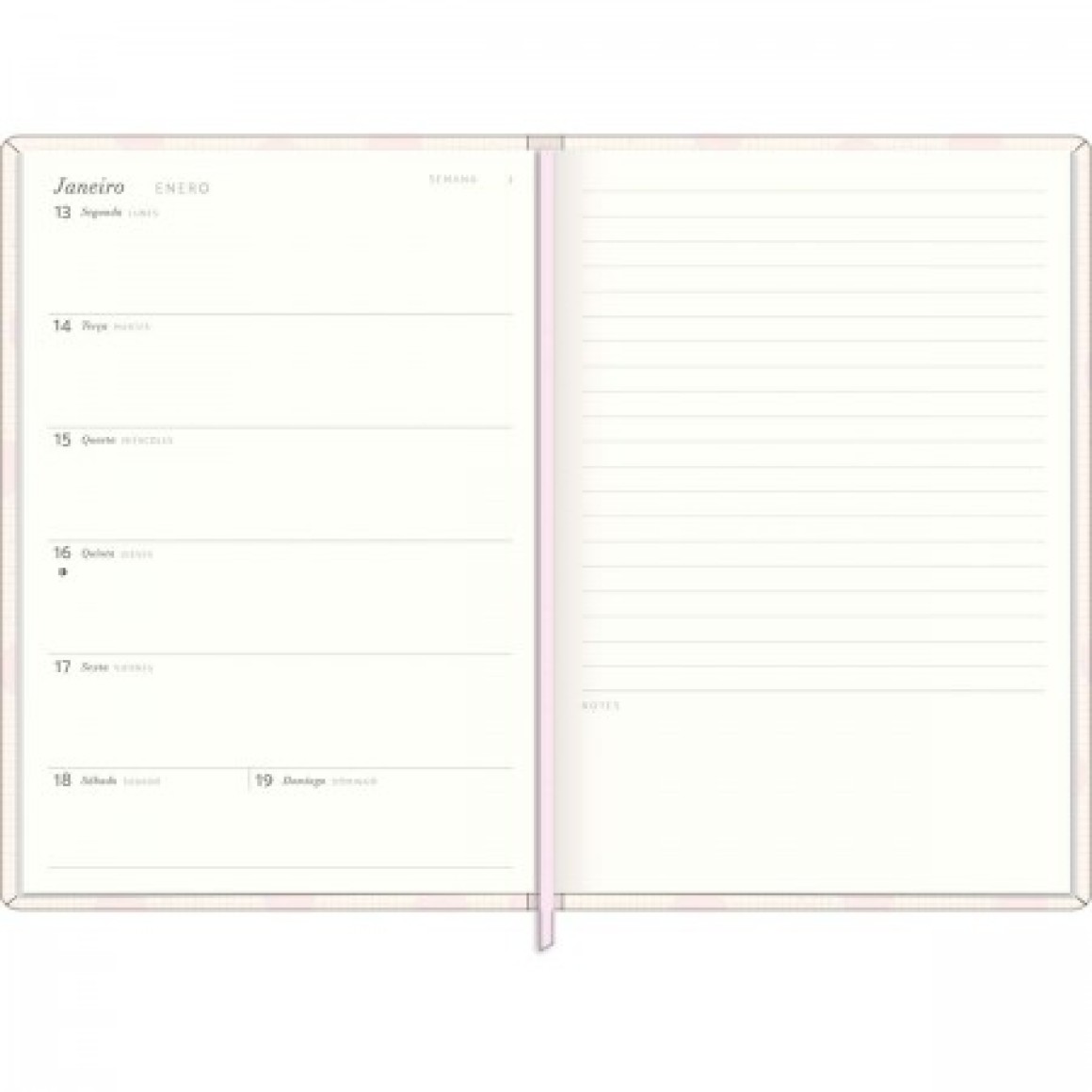 O Planner Costurado 14,5 x 20,5 cm Soho 90 G 2025 pode ser usado para organizar os compromissos do dia a dia em casa, no trabalho e na escola. O produto possui capa dura, fechamento em elástico e miolo, com visões semanal, mensal e anual, com 80 folhas em gramatura 90 g/m².