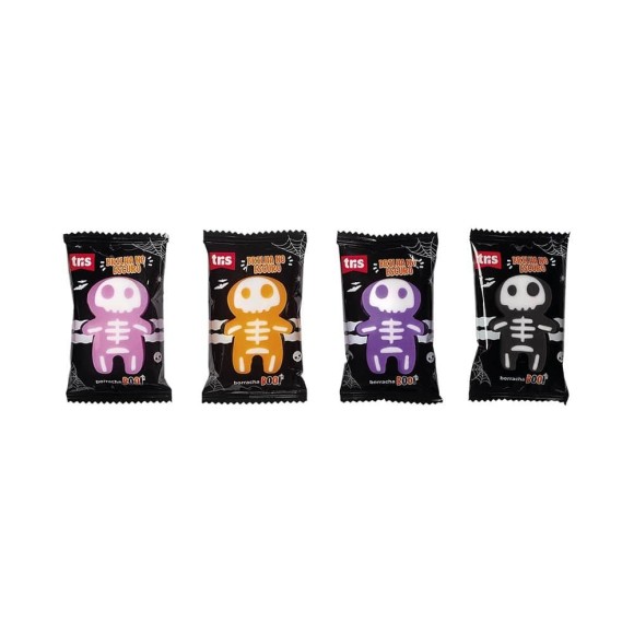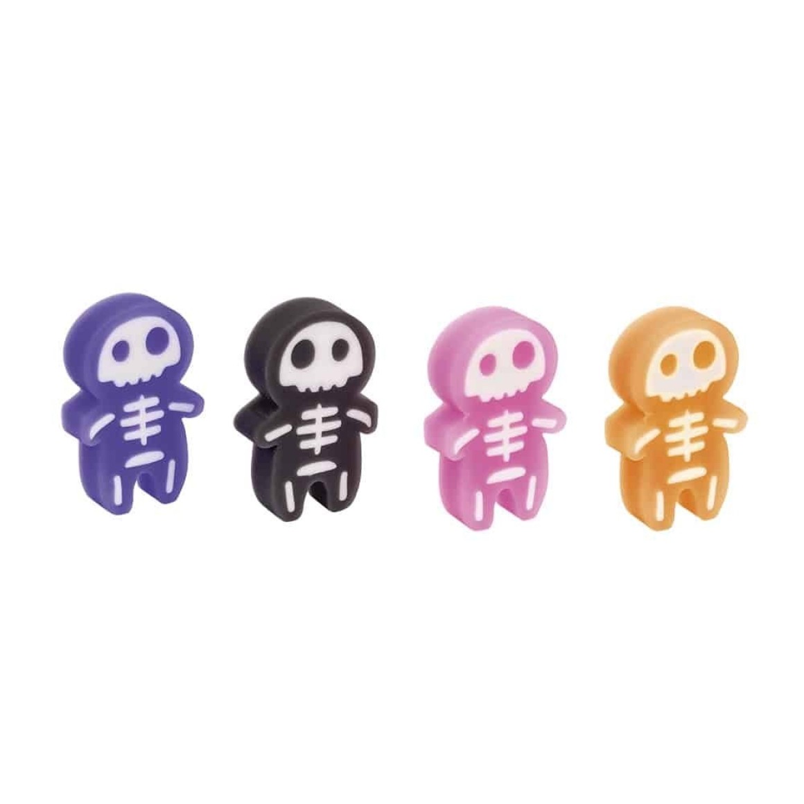 BOO! Com formato divertido de esqueleto e tecnologia que brilha no escuro, essa borracha é perfeita para os amantes de Halloween! A borracha é macia e livre de PVC. Dimensões: 3x5x1,1cm