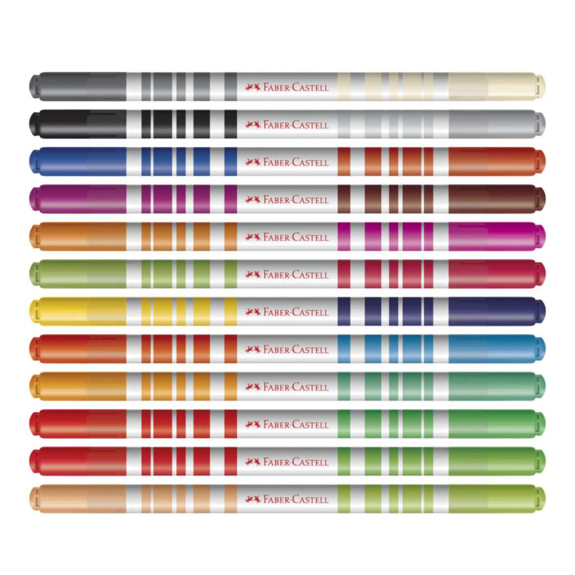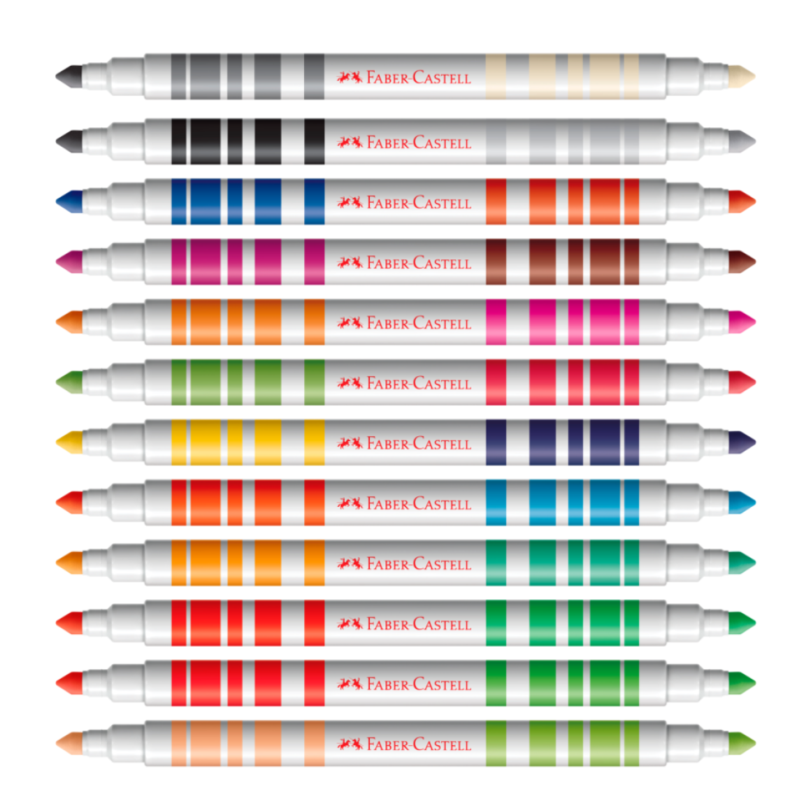 - As canetinhas hidrográficas Bicolor Faber-Castell estimulam a criatividade das crianças com a formulação exclusiva de corantes de alta qualidade com cores mais vivas