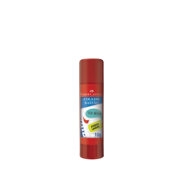 A cola bastão da Faber-Castell cola papéis, fotos e selos. Sua fórmula exclusiva proporciona a secagem rápida, é atóxica e lavável.