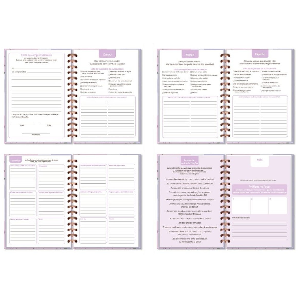 Unimos a papelaria premium com a expertise da Valentina Alas para criar um Diário de Autocuidado para quem busca percorrer um caminho de autoconhecimento e amor-próprio. A ideia deste Diário é ajudar a inserir o autocuidado no seu dia a dia de uma maneira prática e leve. Aqui você encontrará sugestões de autocuidado diário e espaço para criar as suas práticas também. Em todos os meses terá o planejamento semanal para anotar agendamentos, a programação das práticas, e acompanhar a sua evolução. No final de cada mês, há uma página para fazer um balanço e considerações do seu desempenho e duas páginas pontilhadas livres para anotar o que desejar. Use sem moderação, você merece ter seu momento de autocuidado todos os dias! O diário tem a capa dura com aplicação em hot stamp, elástico para fechamento, 105 folhas em papel offset 90g, formato 14,5 x 20,5cm e marcador de página.