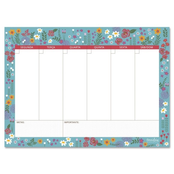Perfeito para deixar a semana organizada e sua mesa muito mais charmosa! Bloco com 52 folhas em papel offset 90g, formato 20x27,5cm.