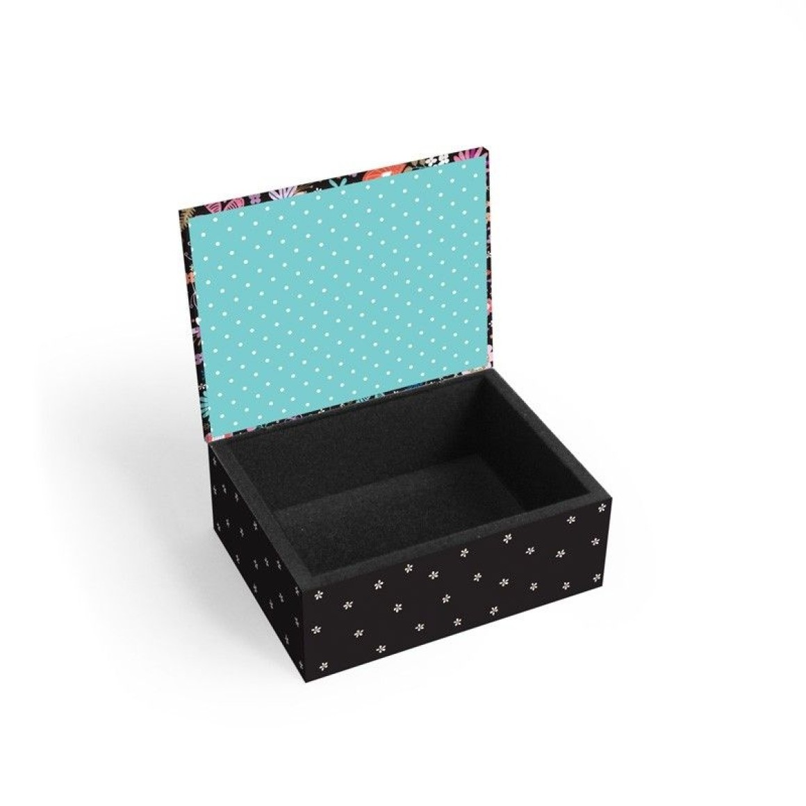 Caixa porta-joia em madeira revestida para você guardar joias, bijus e o que mais desejar. Além das peças ficarem bem protegidas, você ainda vai decorar e deixar lindo qualquer ambiente com esta estampa super fofa! A parte interna é revestida em material aveludado. Medidas: 14,0 comp. x 11,0 larg. x 5,5 cm alt.