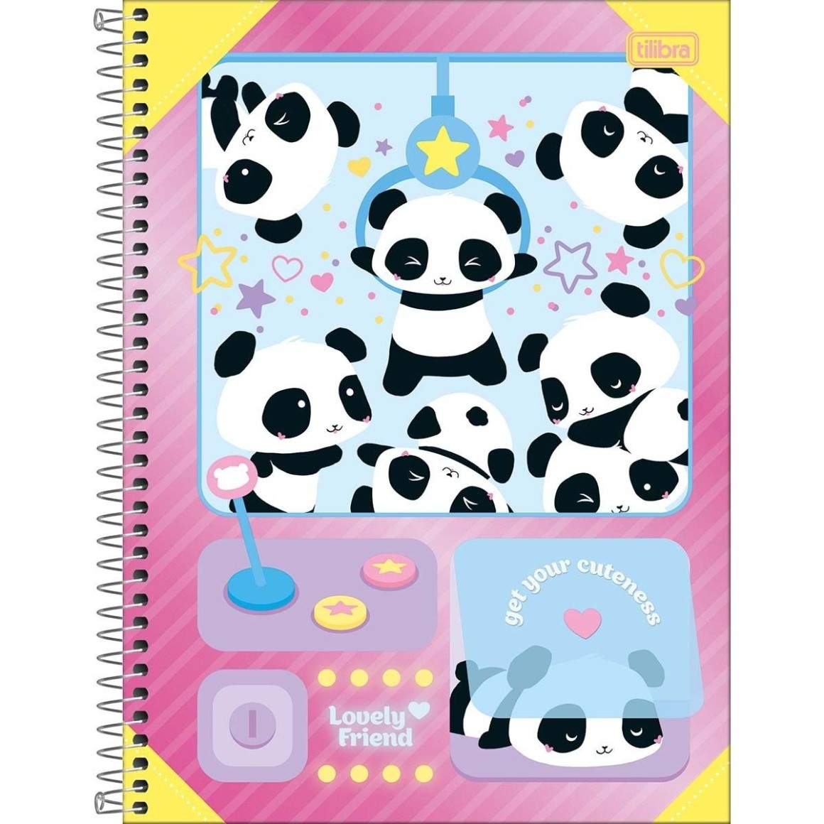 O Caderno Espiral Capa Dura Universitário 10 Matérias Lovely Friend 160 Folhas da Tilibra é perfeito para você que busca uma opção para organização da rotina de estudos com ilustrações de pandas alegres e surperfofinhos.