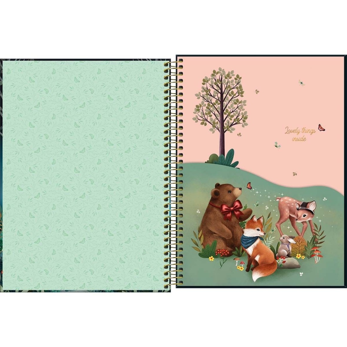 Loveland traz detalhes apaixonantes do coração do bosque, local em que habitam os mais adoráveis e graciosos animais silvestres. A linha possui cadernos em tamanho universitário, com acabamento em espiral, de capa dura com parte interna decorada, adesivos e bolsa portfólio.