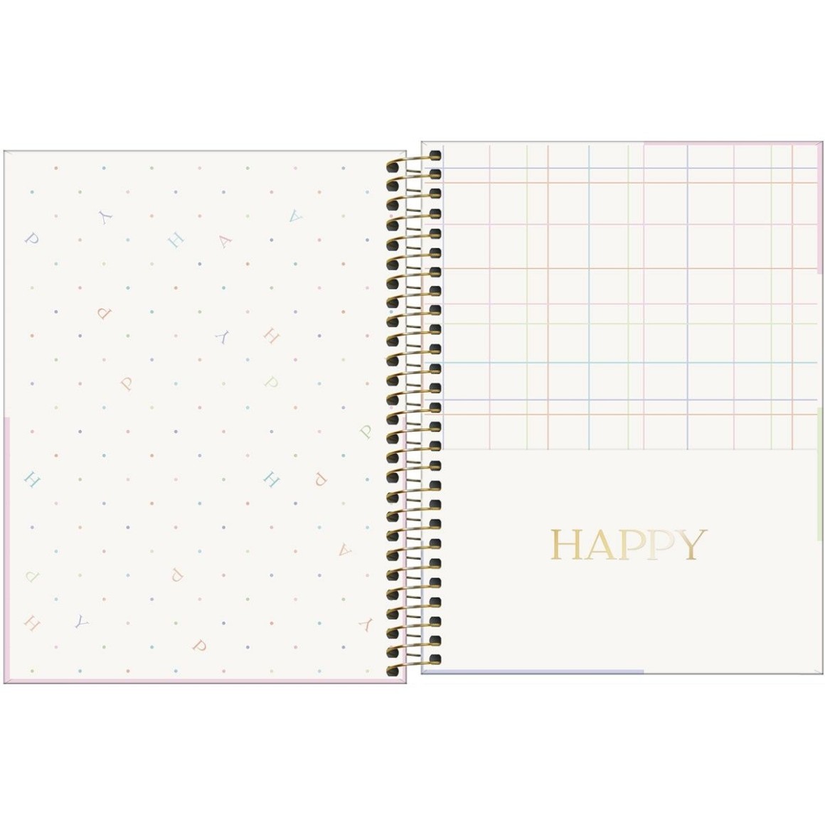 O Caderno Espiral Capa Dura Colegial 10 Matérias Happy 160 Folhas da Tilibra é perfeito para você que busca uma opção para organização da rotina de estudos com visual em cores pastel.
