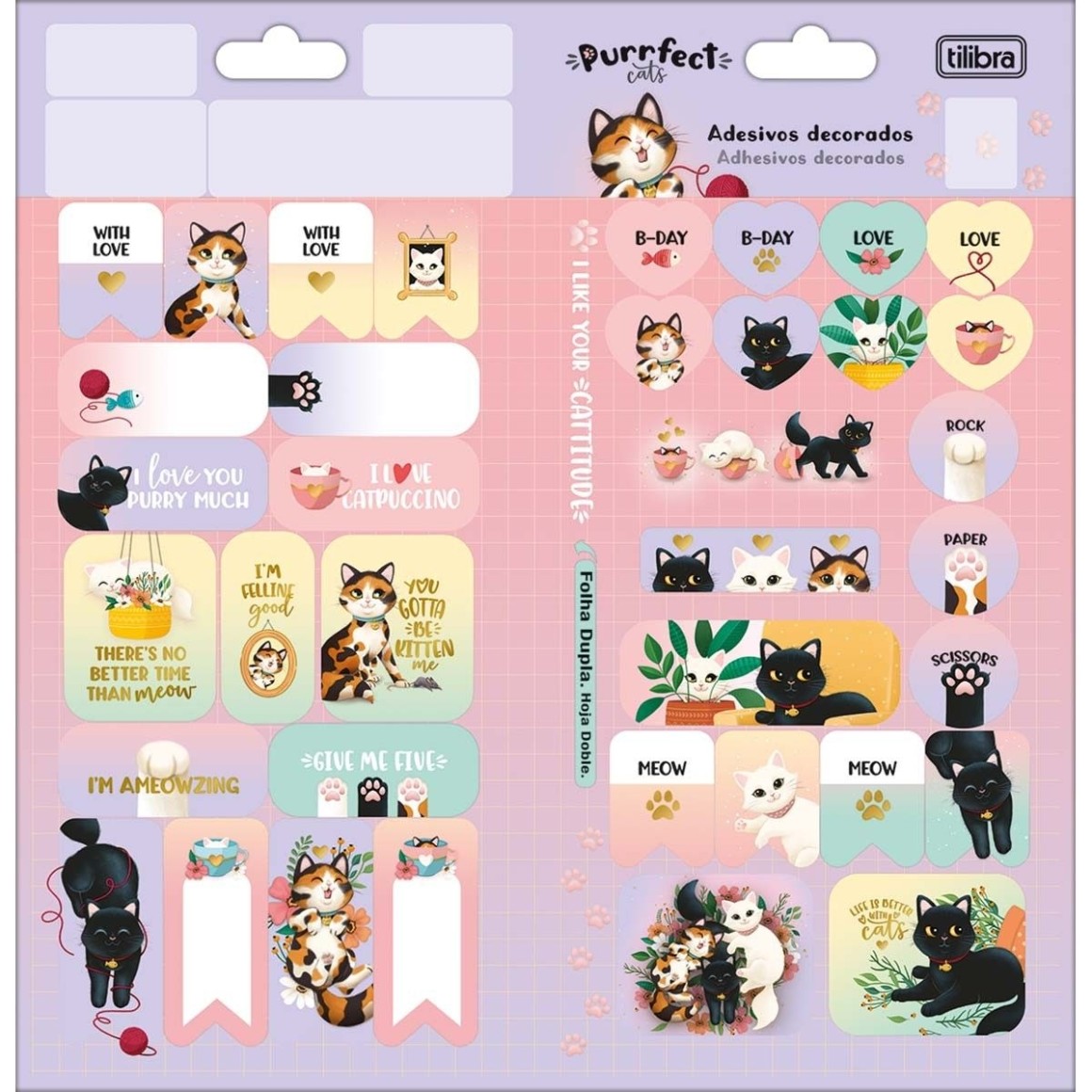 O Adesivo Decorado Duplo Purrfect Cats é ideal para decorar e personalizar itens do material escolar como cadernos, livros, agendas e mais.