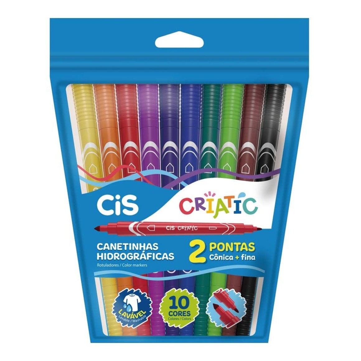 Canetinhas Hidrográficas Criatic Duas Pontas 10 cores | CIS