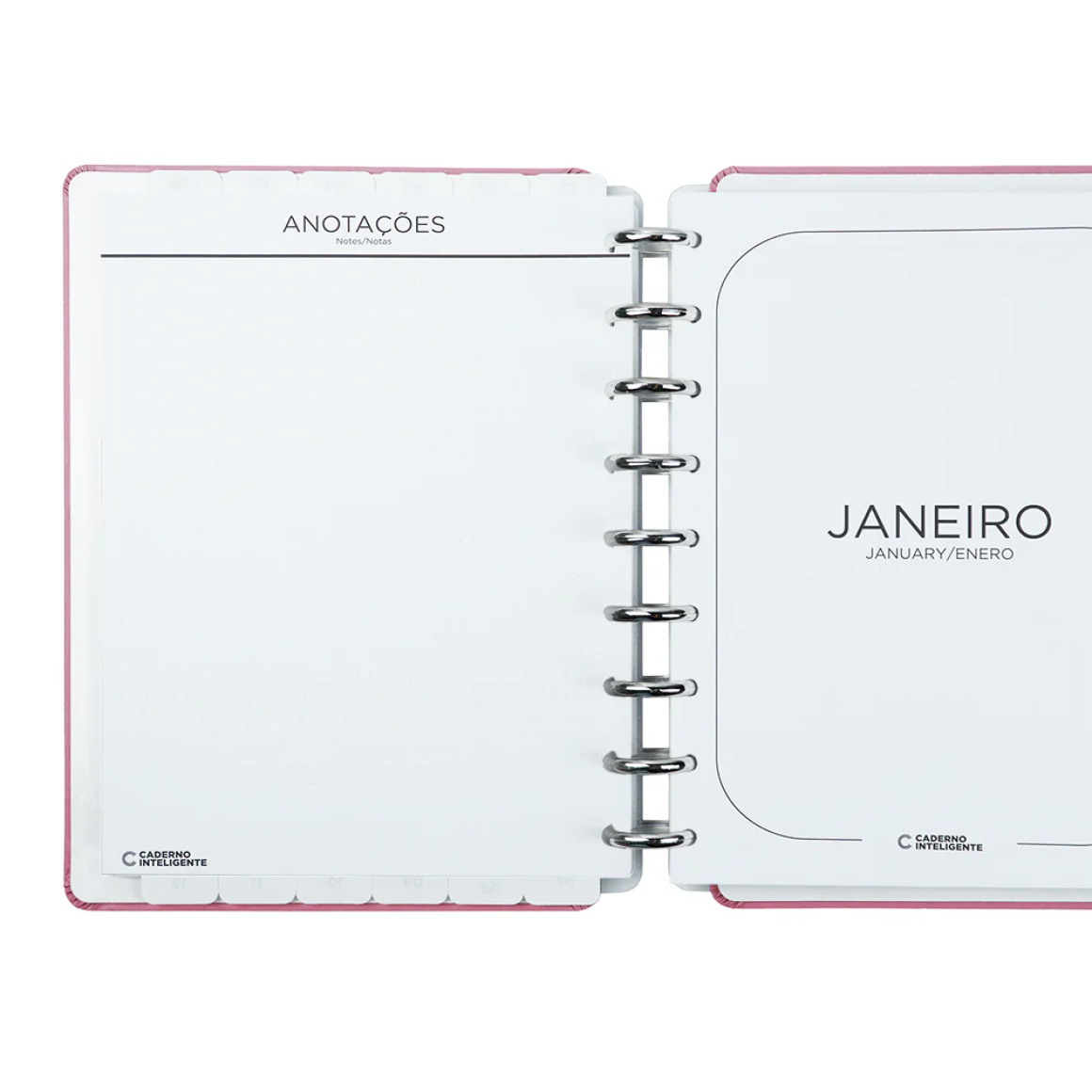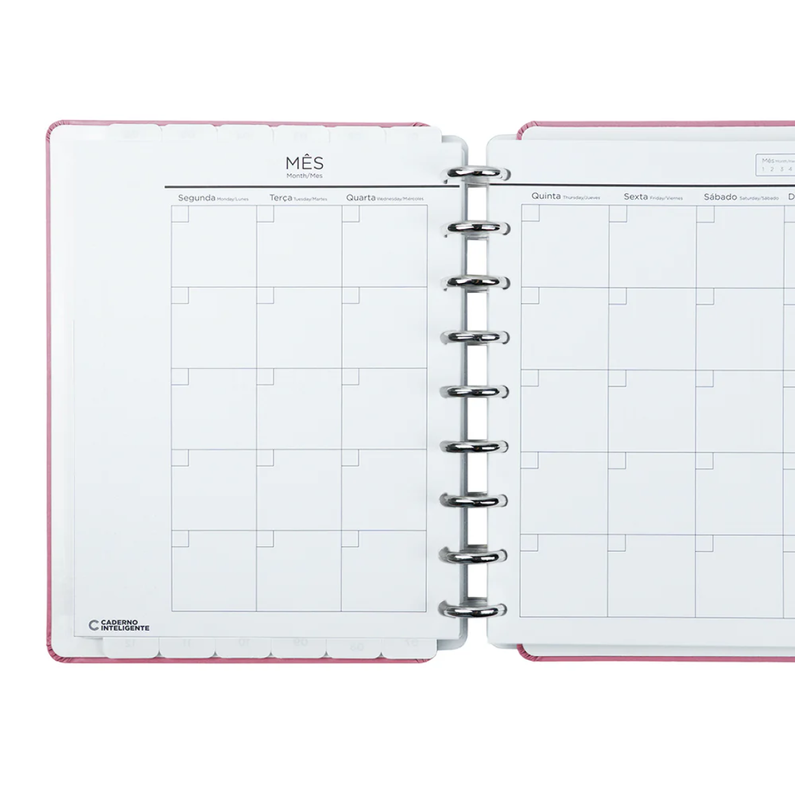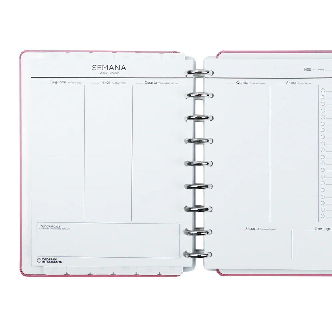 Perfeito para o dia a dia de quem precisa de praticidade, mas não abre mão de suas anotações no papel. Dividido em 2 grandes categorias para facilitar sua organização, ele possui planejamento mensal e semanal, além de página de metas e resumos.