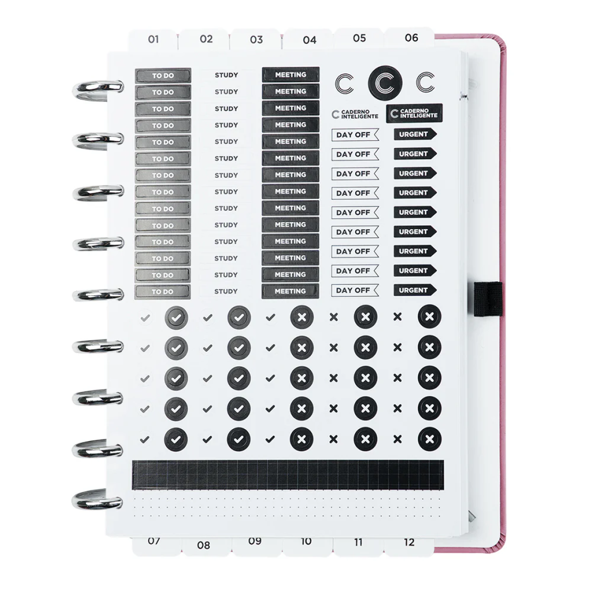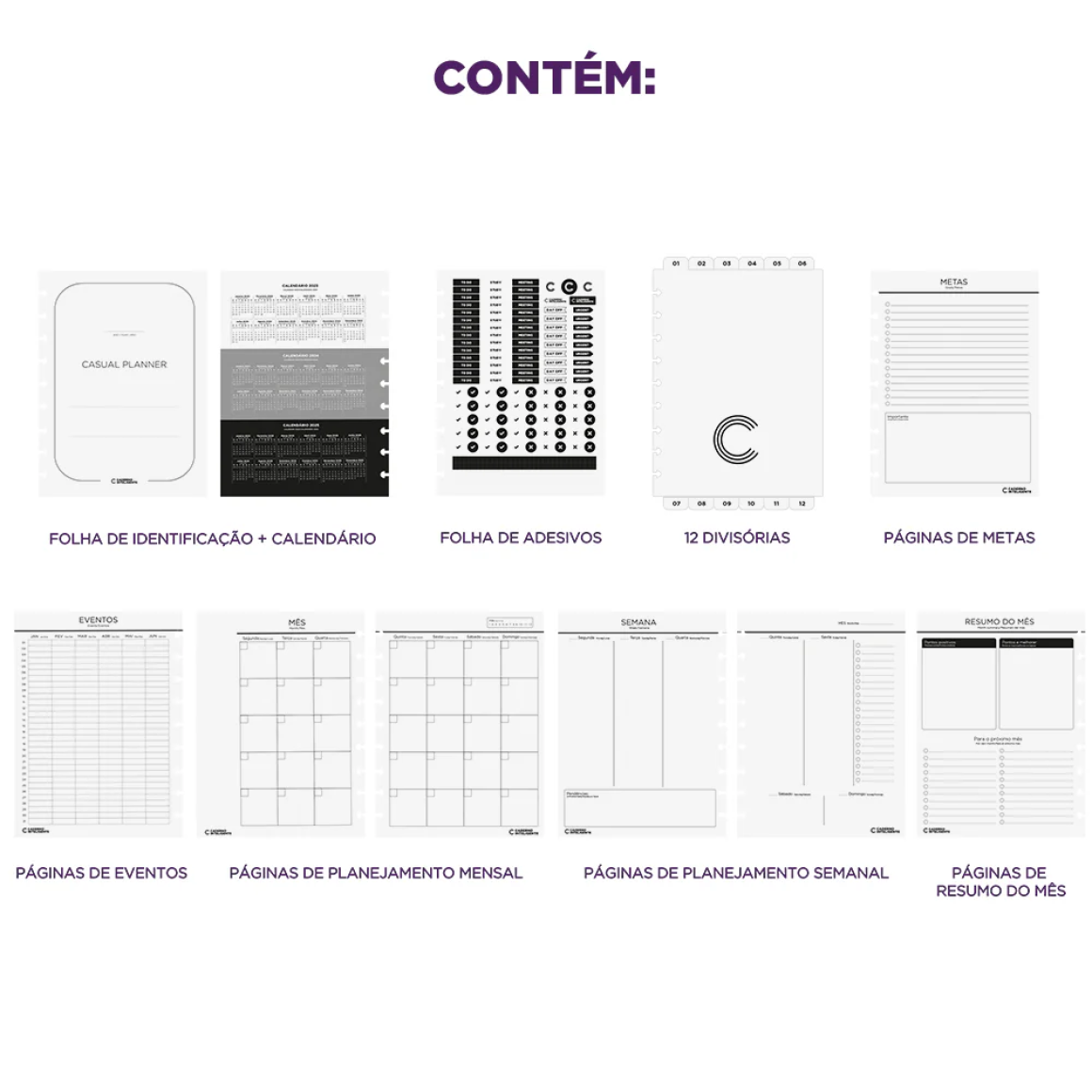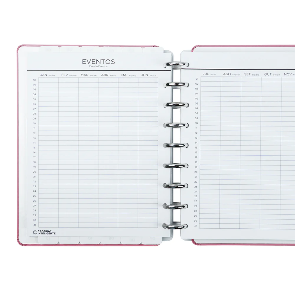 Perfeito para o dia a dia de quem precisa de praticidade, mas não abre mão de suas anotações no papel. Dividido em 2 grandes categorias para facilitar sua organização, ele possui planejamento mensal e semanal, além de página de metas e resumos.
