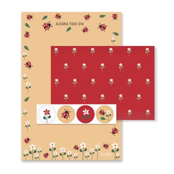 Papel de carta 4 unid. Joaninha | Fina Ideia