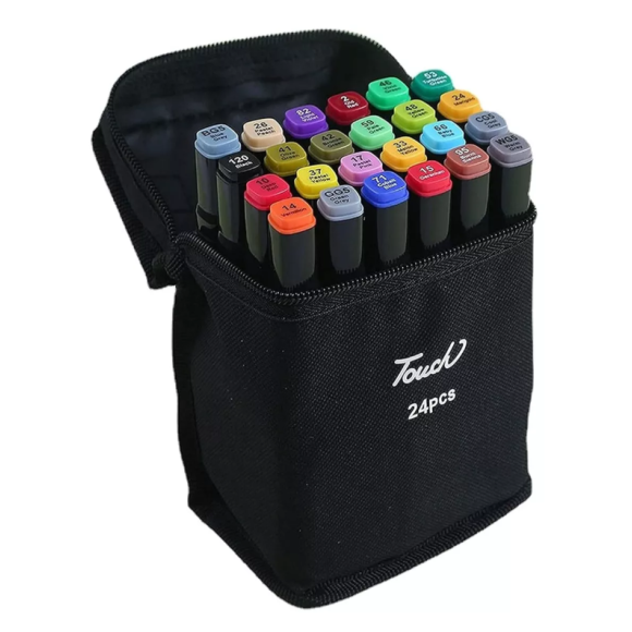 Contém no kit: marcadores de ponta dupla + estojo de transporte.