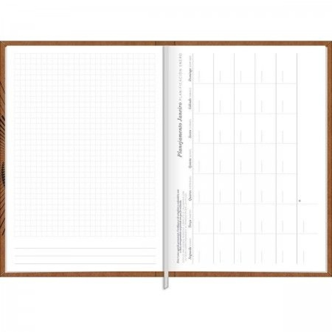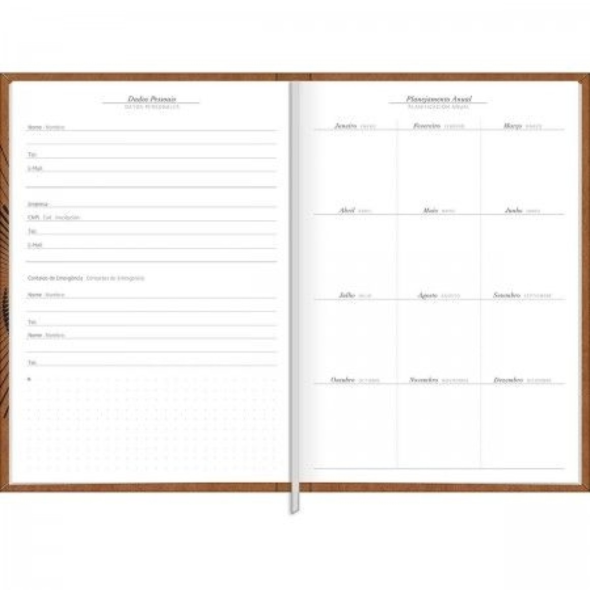 Uma agenda permanente não possui os dias da semana impressos. Isso torna o produto flexível e reutilizável, ideal para anotações e planejamento contínuo sem a limitação de um ano específico.