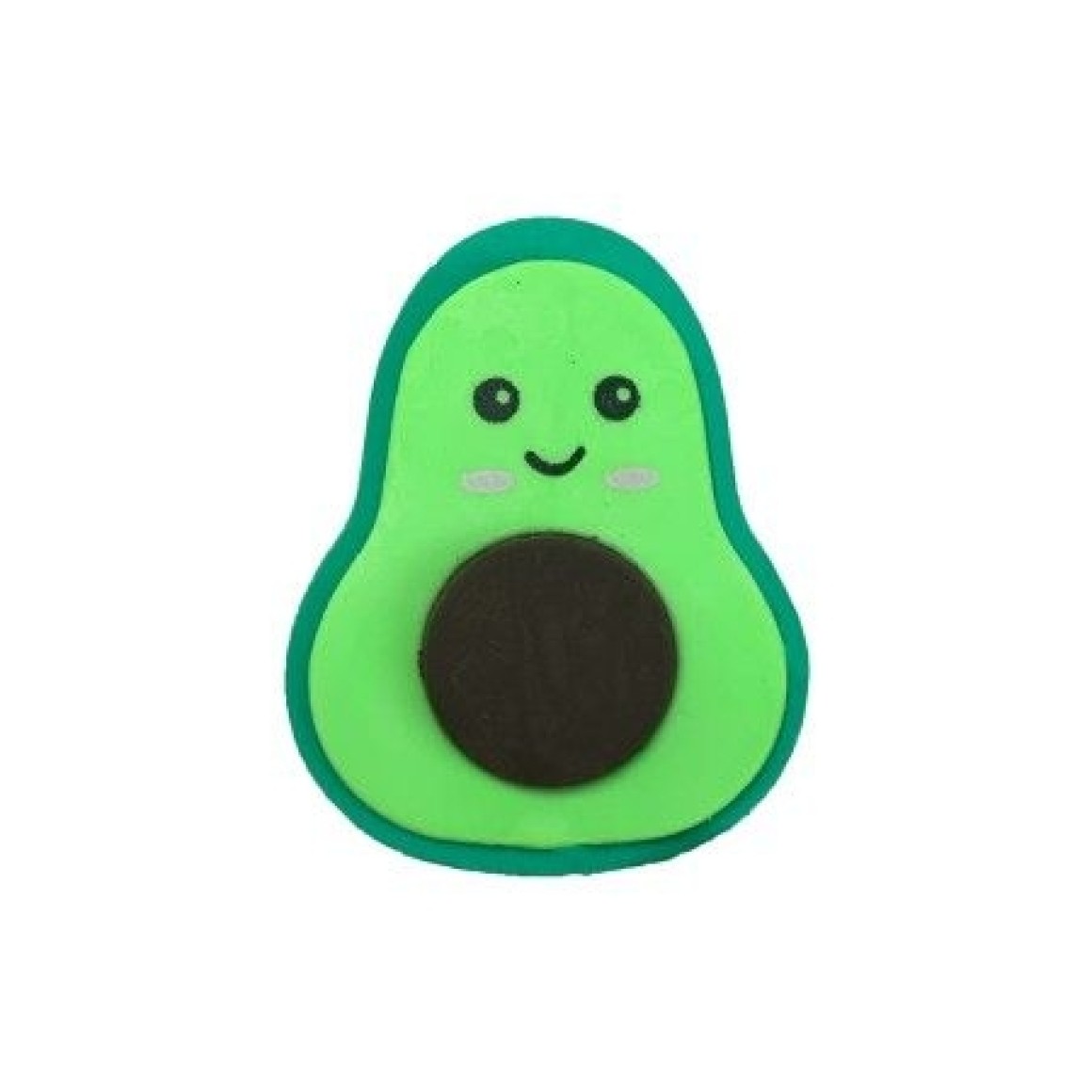 A Borracha Abacatinho apaga tudo de maneira eficiente e divertida. O produto, no formato 37x30x26mm, é macio e tem fórmula livre de ftalato, garantindo eficiência e segurança durante o uso.