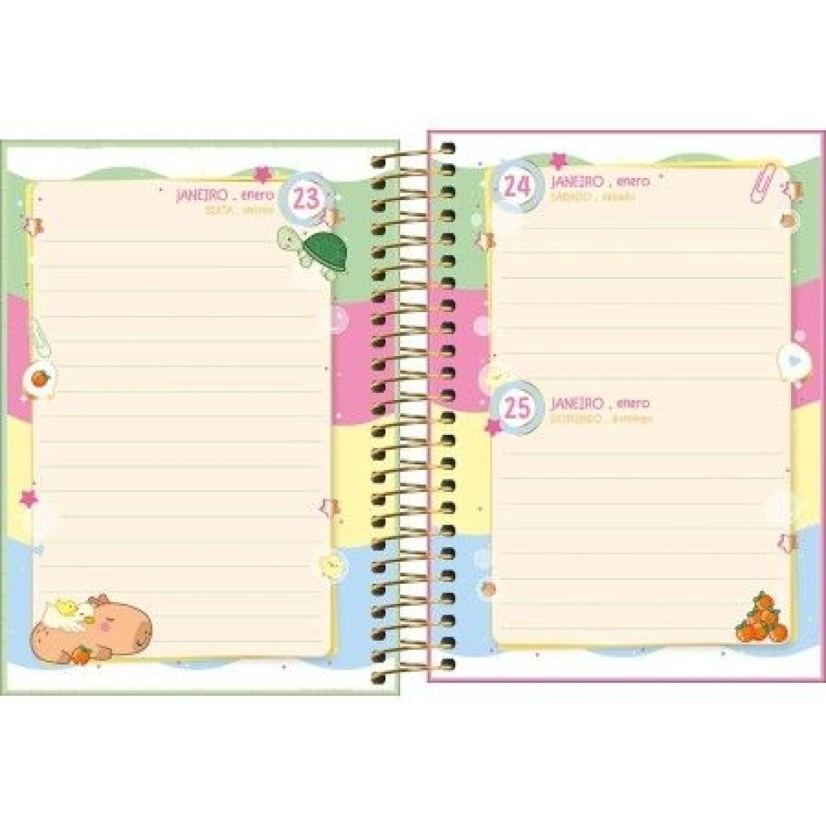 Se você busca um produto de papelaria fofa para se organizar, a agenda espiral Capyclub da Tilibra é a escolha perfeita. O produto tem tamanho 11 x 15,4 cm, capa dura com detalhe metalizado, adesivos e folhas decoradas, com visão de 1 dia por página, exceto aos sábados e domingos. Esta agenda 2026, que possui 160 folhas, é escolha ideal para manter todas as tarefas e compromissos bem programados de uma forma linda e muito divertida!