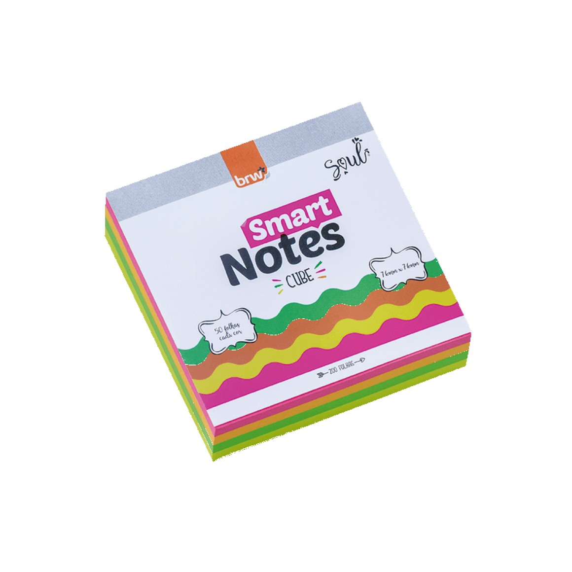 Bloco com folhas quadradas e 4 cores em tons vibrantes: rosa, laranja, verde e amarelo. Com adesivos reposicionáveis, que não deixam resíduos de cola ao serem retirados. 200 Folhas de gramatura de 75g/m² Podem ser colados em computadores, portas, paredes, vidros e espelhos, entre outros locais. Smart Notes 76X76mm