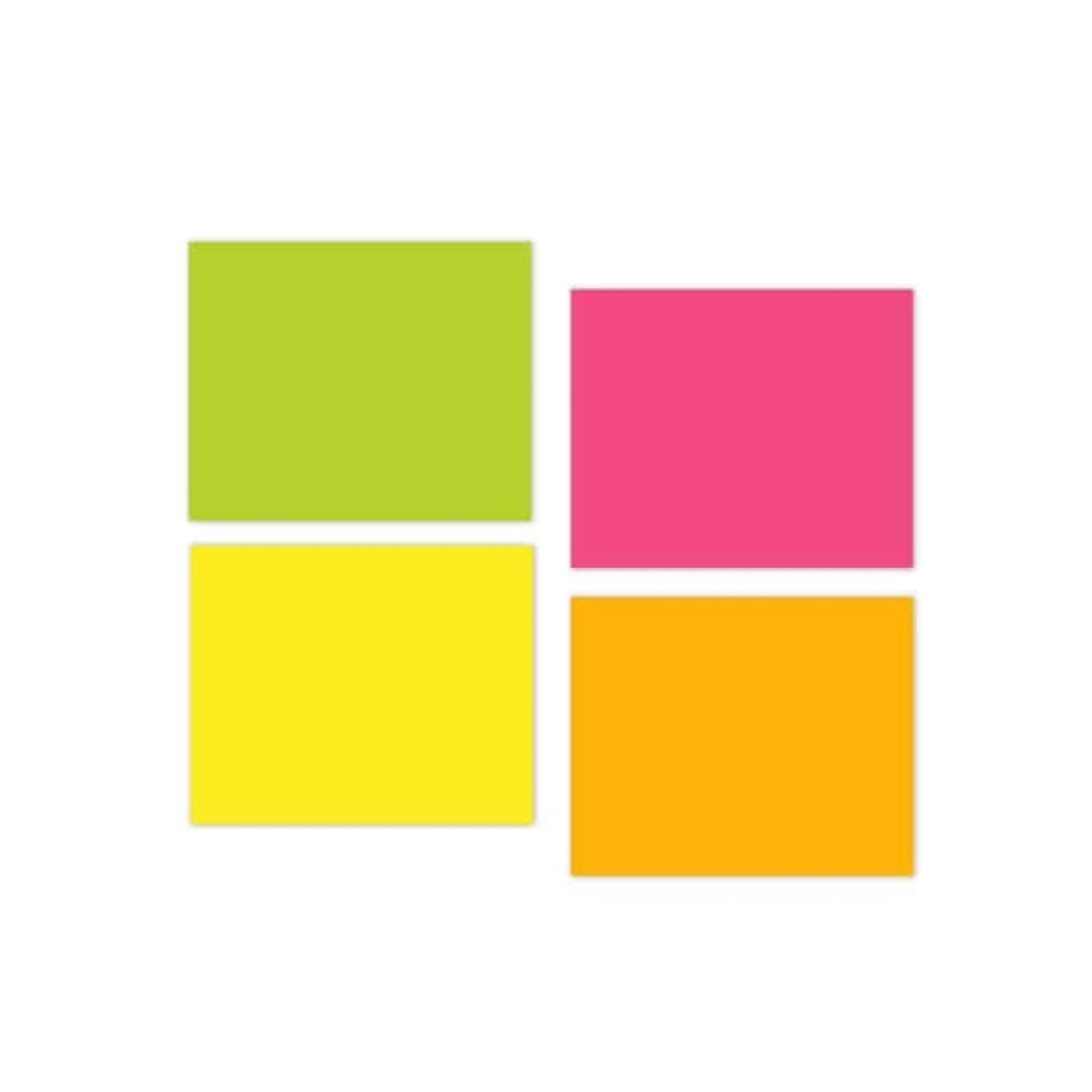 São 4 blocos de 100 folhas cada em cores neon. O papel aceita escrita, é fácil de aplicar e reposicionável! Em tamanho super prático pra carregar no estojo. Dimensões: 50x40mm.
