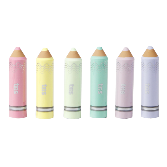 A borracha Lápis tem formato divertido de lápis coloridos. É atóxica livre de PVC e tem textura super macia!