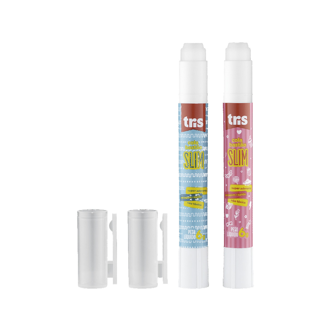 A cola Slim é ideal para carregar no estojo! Fininha, prática e com duas estampas lindas pra você escolher! Além disso, possui alta resistência ao calor, ótima aderência e secagem ultra rápida.