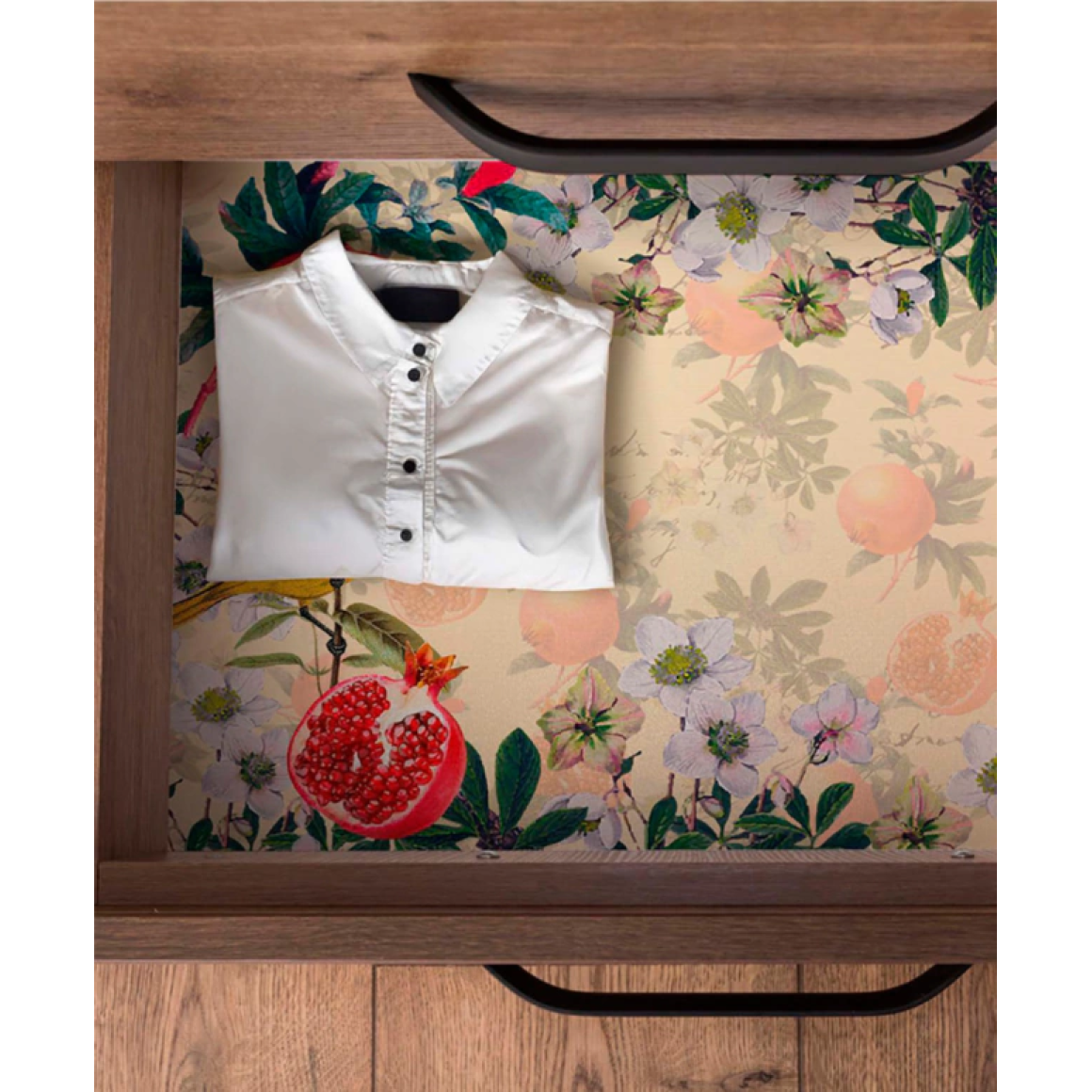 O Papel Perfumado para Gavetas Romã traz charme e sofisticação para sua rotina. Além de decorar com sua estampa delicada, perfuma roupas e objetos pessoais com um aroma refinado e envolvente, criando uma sensação única de aconchego e cuidado.